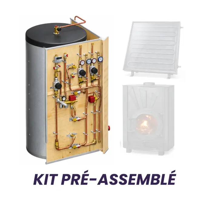 Ballon qui peut fonctionner seul et qui sert de base pour ajouter un capteur solaire ou un poêle bouilleur par la suite.
