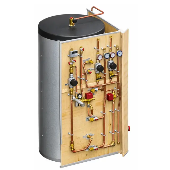 Système prémonté avec les principaux composants et raccordements déjà réalisés pour faciliter l’installation.