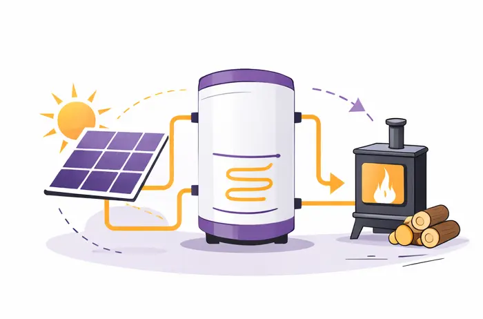 - Évolutives / hybrides : combinent plusieurs sources (ex. solaire + bois) pour maximiser l’efficacité et la disponibilité de l’eau chaude.